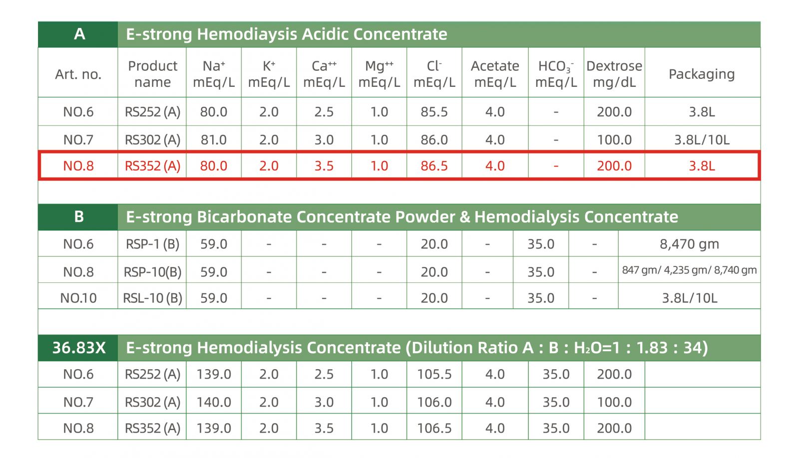1. This medicine, ""Estrong"" No.8 Hemodialysis Concentrate RS352(A), please use with the ""Estrong"" No.8 Bicorbonate Concentrate Powder RSP-10(B).