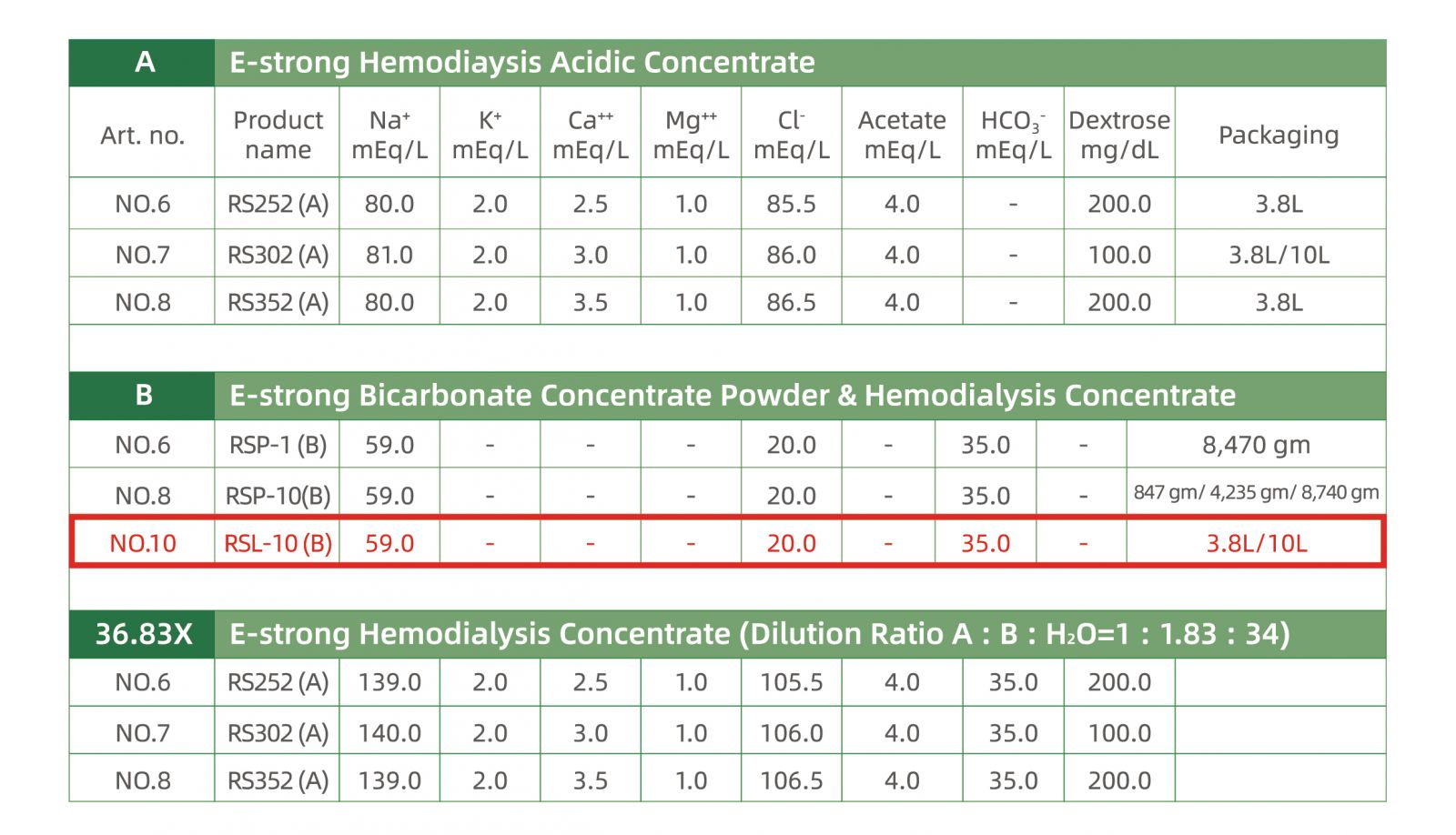 1. This medicine, ""Estrong"" No.10 Hemodialysis Concentrate RSL10(B), please use with the ""Estrong"" No.7 Hemodialysis Concentrate RS302(A).