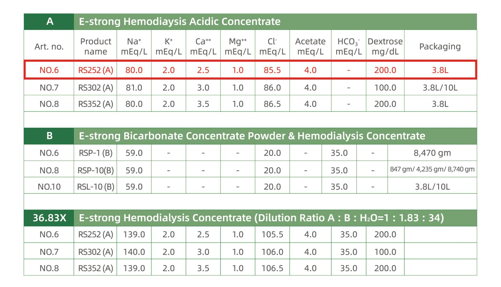 1. This medicine, ""Estrong"" No.6 Hemodialysis Concentrate RS252(A), please use with the ""Estrong"" No.6 Bicorbonate Concentrate Powder.